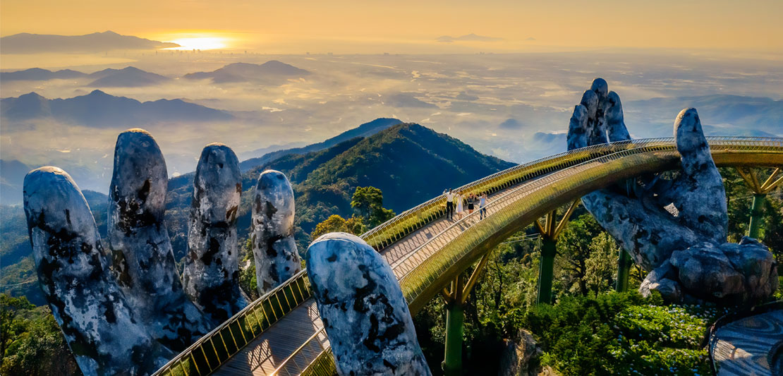 두 개의 거대한 손이 다리를 받치고 있는 형태로, 길이 150m, 폭 5m, 공사기간은 약 1년이 소요되었으며, 독창적인 디자인으로 전 세계의 주목을 받는 다낭의 새로운 관광명소로 인기를 끌고 있습니다.
