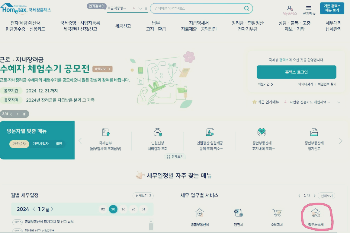 1. 국세청 홈택스 홈페이지에 접속합니다.