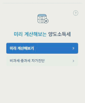 3. 미리 계산해보기 클릭 (  아래 사진을 보시고 미리 사전에 양도가액, 취득가액, 기타 경비 등 확인 필요
