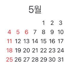 • 부처님 오신 날 : 5월 5일 (월요일)